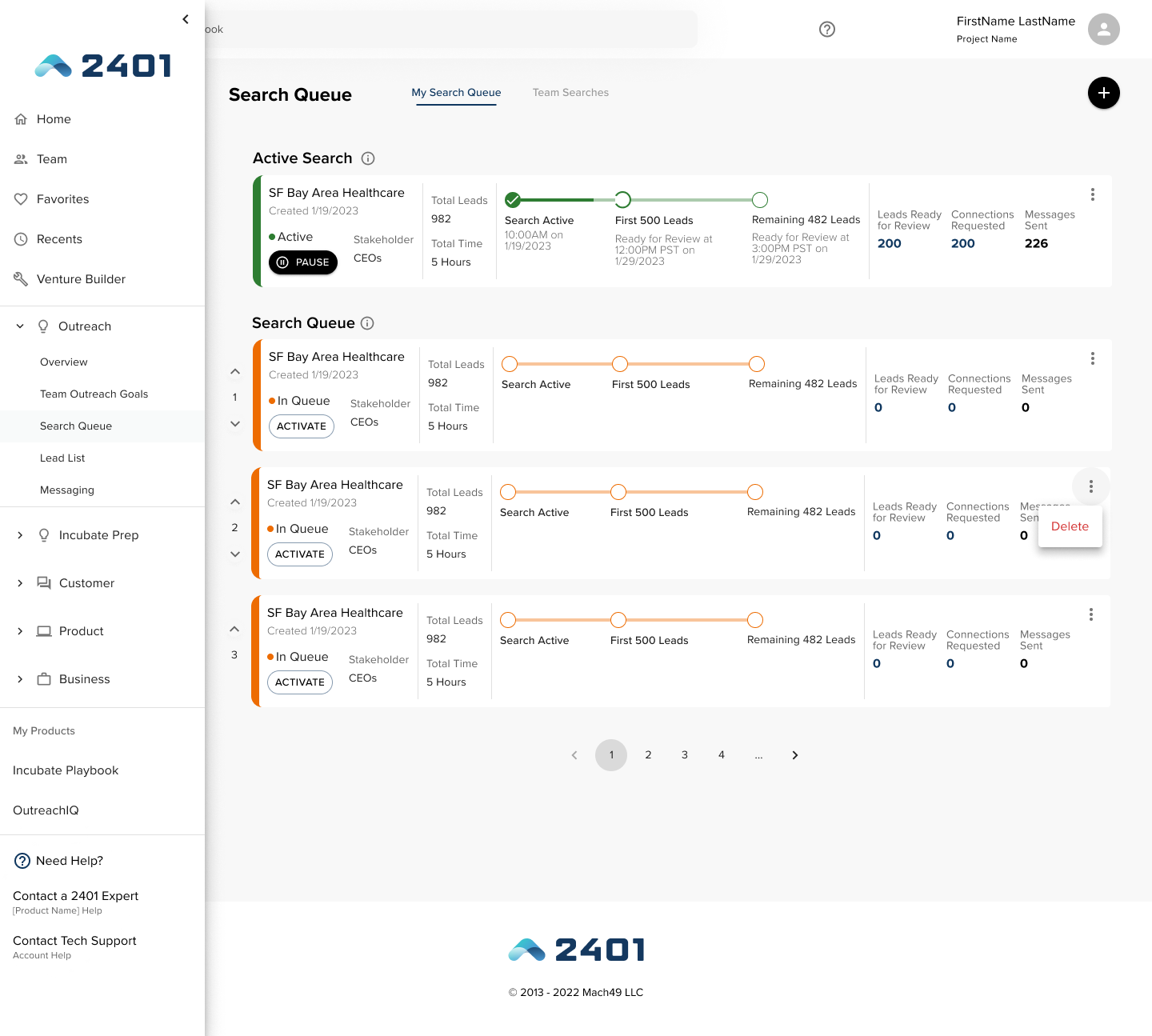Feature Adjustments: Originally, the full platform included features like setting outreach goals, which allowed teams to track performance. However, these features had to be removed due to space constraints. We still included search progress, lead statuses, and notifications for new leads.
