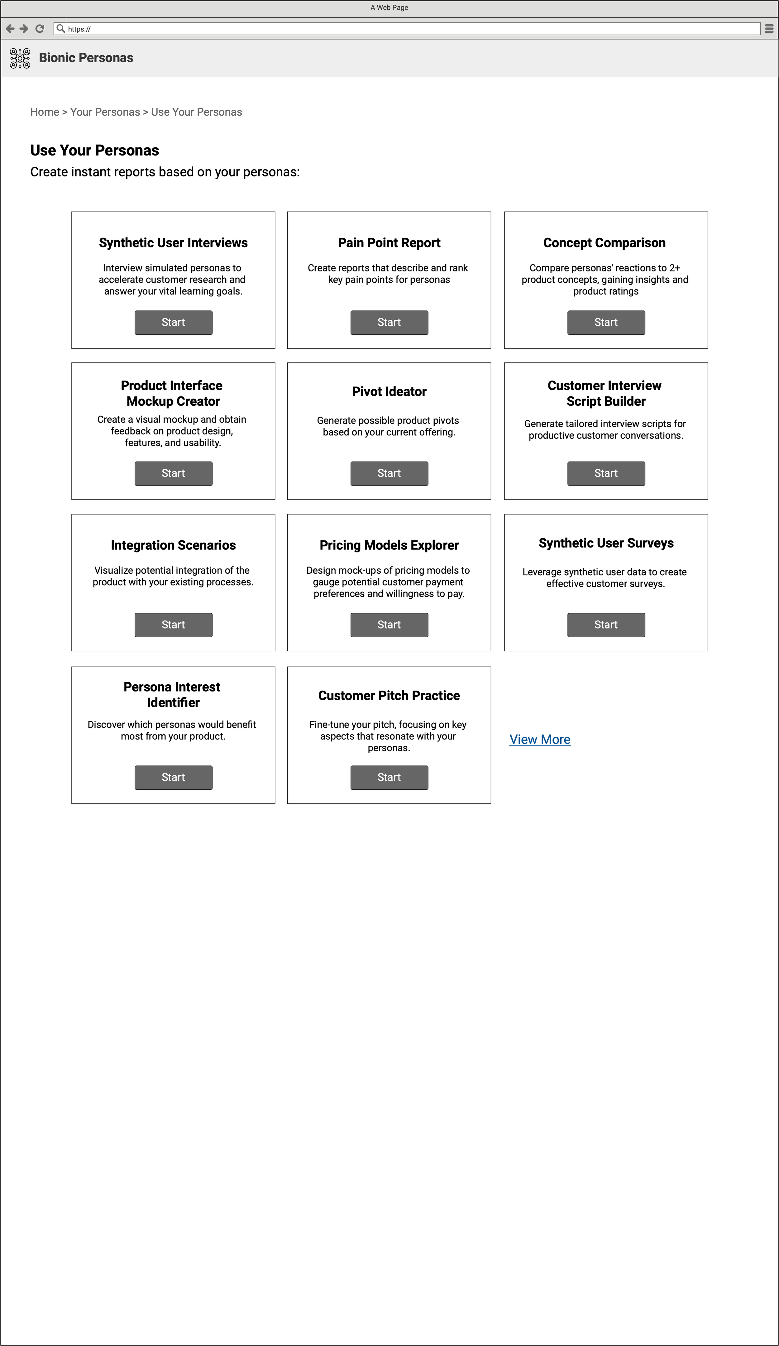 Synthetic Interview Feedback: In addition to being able to speak directly to personas, we also provided automated synthetic feedback to potential solution ideas to help supplement real life value proposition testing.