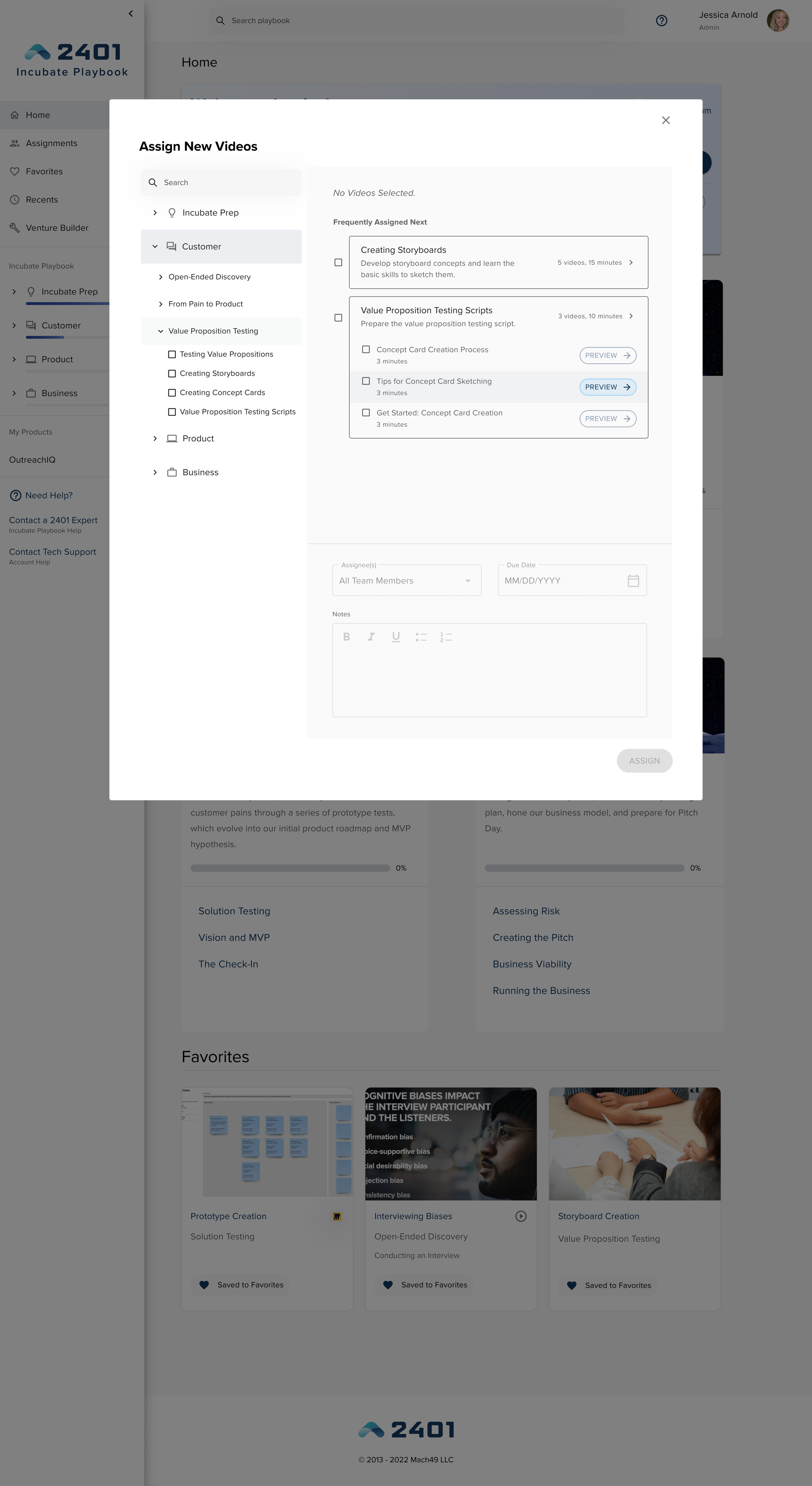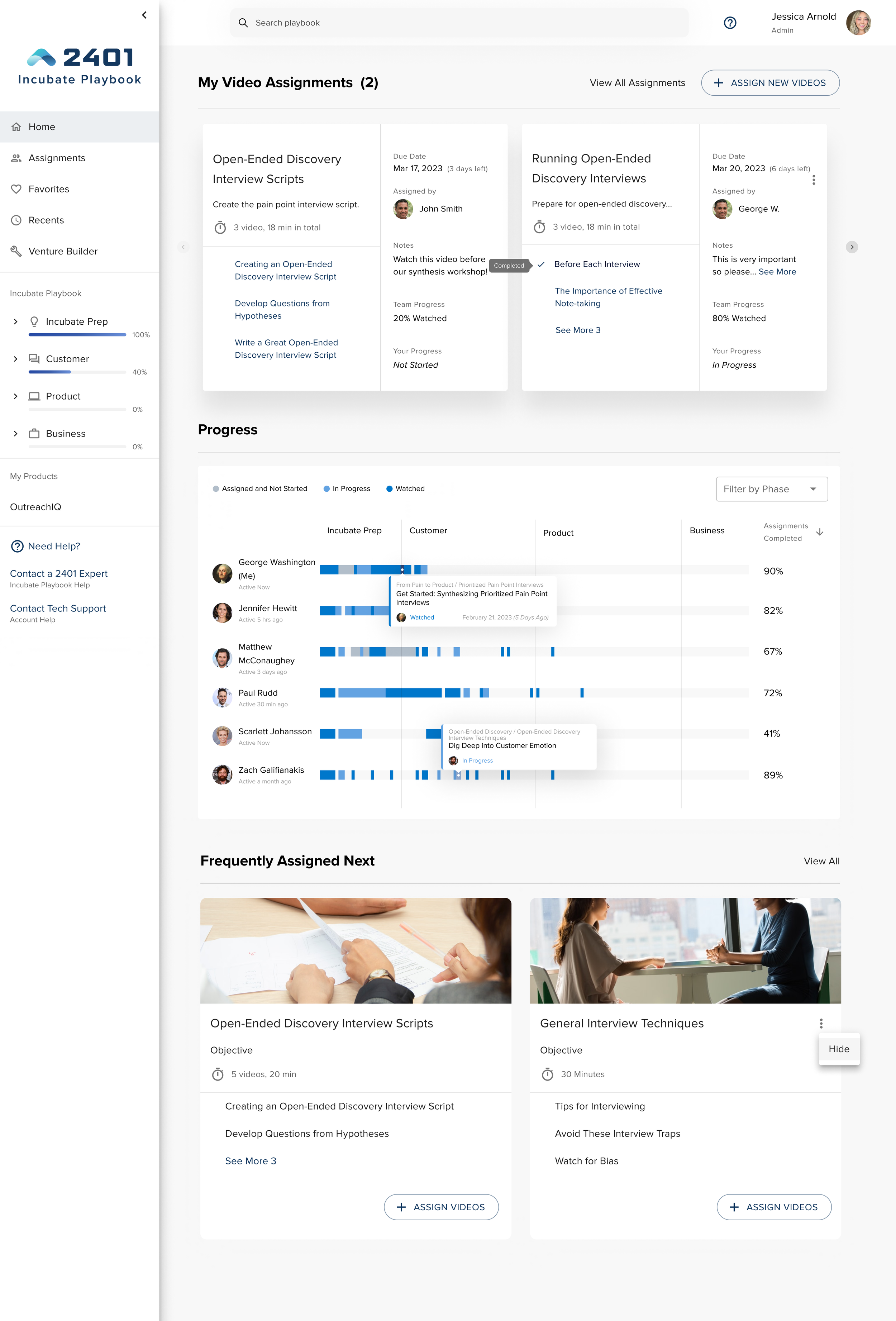 After launch and initial testing Mach49 employees expressed a strong desire to be able to assign tasks on the platform and be able to track who has watched what.