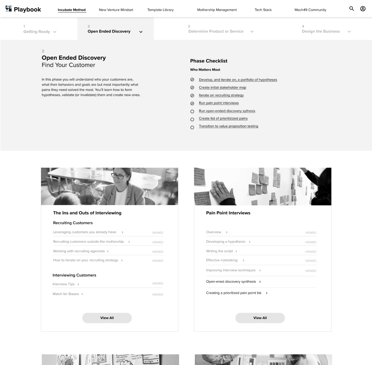 My previous company, Mach49 is a venture building company that was rapidly scaling, and we needed a way to help solve these growing pains. Mach49 works with Fortune 1000 companies to bring teams of entrepreneurs together, conduct customer research and find product market fit. This is a very intense, 3 month incubation process that often leaves both Mach49ers and our client entrepreneurs (or venture builders) overwhelmed and exhausted.